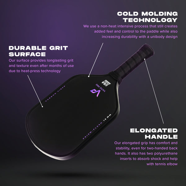 Our PRISM series is a holistically designed, reimagined paddle that is the benchmark for an affordable carbon fiber pickleball paddle. We have implemented the highest quality TORAY T700 raw Carbon Fiber and engineering to help you perform at the highest level on the pickleball court.
